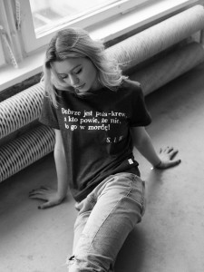 NAPIS NA KOSZULCE ZOSTAŁ NAMALOWANY RĘCZNIE.